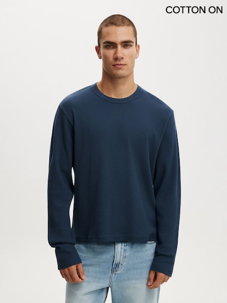 Blau - Cotton On Cropped Fit Strukturiertes Langarm-T-Shirt