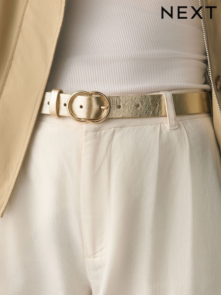 Goldfarben - Regulärer Ledergürtel mit Statement-Schnalle