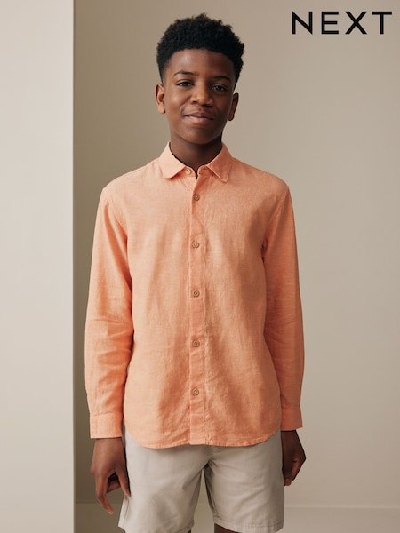Orange - Langarmhemd aus entspannter Leinenmischung (3–16Jahre)