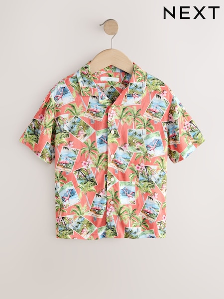 Pfirsich-Pink Postkarte mit Allover-Print - Kurzarmhemd mit Reverskragen (3–16Jahre)