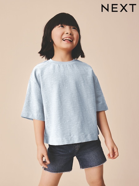 Blau - Textured Oversized Boxy T-Shirt (3-16yrs)