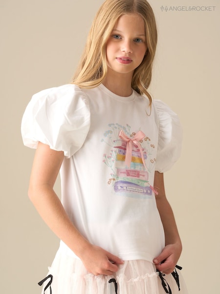 Burg Weiß - Angel & Rocket Eve Rüschen-Herz-Puffärmel-T-Shirt
