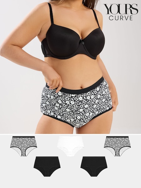 Schwarz mit floralem Muster - Yours Curve Voll bedeckende Slips im 5 er-Pack