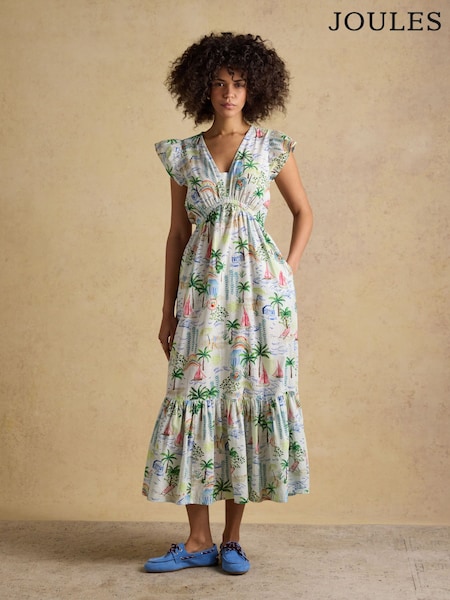 Coastal Scene Print - Joules Winnie Frill Shoulder Maxi Dress