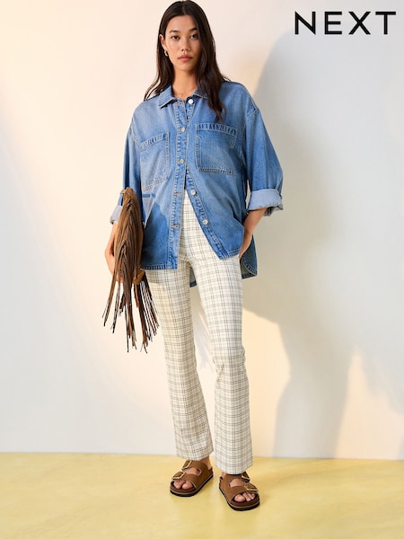 Ecru/Braun kariert - Bootcut Leggings