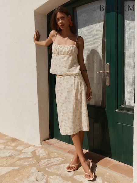 Röhrenrock mit Blumenmuster und Bindeband am Bund