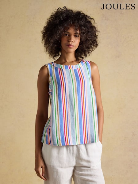 Mehrfarbig gestreift - Joules Cove Ärmelloses Oberteil mit Rundhalsausschnitt und Leinen