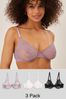 Bought this three pack bra set and they are a perfect fit. Very true to size, good fit and support and lovely lace and quality. Highly recommend them. Next bras are good quality and a very comfortable and supportive.