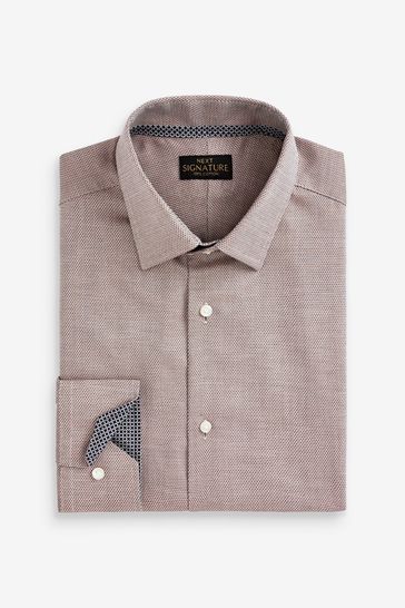 Lovely shirt and not too textured. Good fit, washes well. Only gave it 4 stars because the fabric isn't quite as thick as I would have liked but it still looks like a quality shirt.