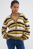 Khaki Green Striped Gem Button V-Neck Jumper