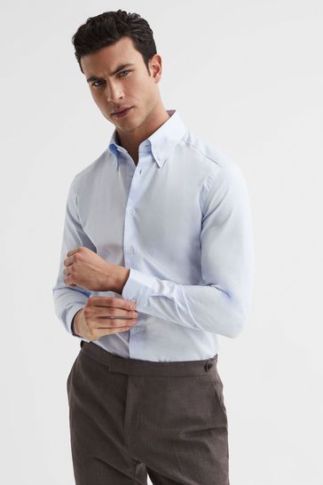 Formal moments call for the Redknapp shirt in soft blue. It’s an Oxford style, fitted with a button-down collar for a heritage look. Back darts tailor it to a slim-fit silhouette. Add your favourite tie and a single or double-breasted blazer for a sleek city edit. 100% cotton. Button-down collar. Buttoned closure. Long sleeves. Buttoned cuffs. Darts to the reverse. Slim fit. Reiss partners with Better Cotton to improve cotton farming globally. Better Cotton is sourced via a system of Mass Balance and is not physically traceable to end products.