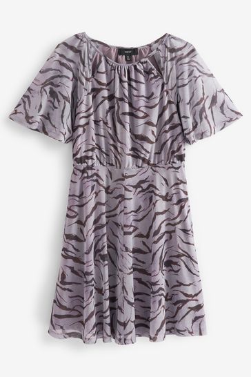 Lilac Purple Zebra Print Flutter Sleeve Mesh Mini Dress