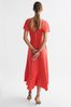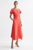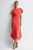 The coral Eleni midi dress is crafted from a fluid fabrication that’s slightly cinched at the waist to accentuate the natural frame. Cap sleeves are added for femininity, alongside a subtle pleat to the chest. The reverse features a cross-back detail. Style with heels for a sophisticated occasion edit. Crew neckline Pleat to front Capped sleeves Cross-back detail Side slip pockets Zip to reverse Midi length Relaxed fit The model is wearing a size 8 Measurements of model: Height 5ft 10" / 178cm