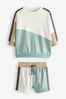 Mineral green/White Colourblock Sweatshirt And Shorts Set (3mths-7yrs)