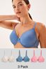 Coral Pink/Blue/Cream Microfibre Smoothing T-Shirt Bras 3 Pack