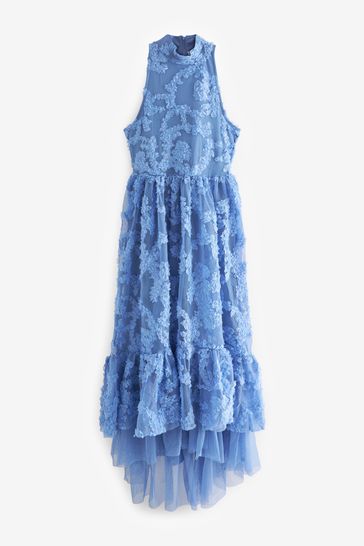 3D Floral Mesh Midi Dress