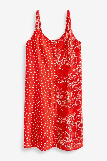 Red Floral and Spot Print Button Through Mini Slip Dress