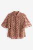 Purple Tie Waist Flutter Short Sleeve Sparkle Blouse