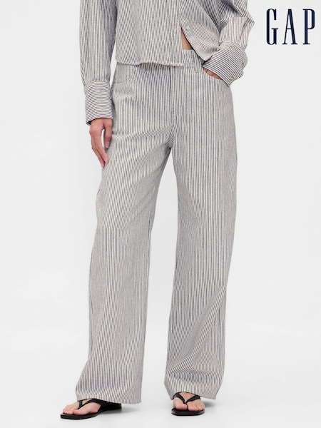 Gap Grey Stripe Linen Cotton Wide-Leg Trousers