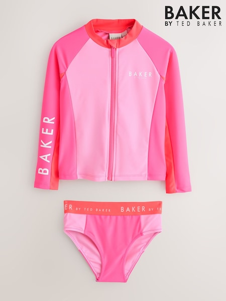 Baker by Ted Baker Pink Colour Block Rach 3 Piece Vest and Bikini Set