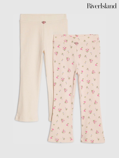 River Island Pink Ribbed Floral Kickflare Leggings 2 Pack
