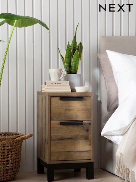 Dark Natural Bronx Oak Effect 2 Drawer Bedside Table