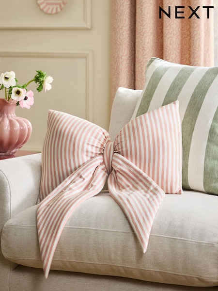 Pink 3D Stripe Bow Cushion