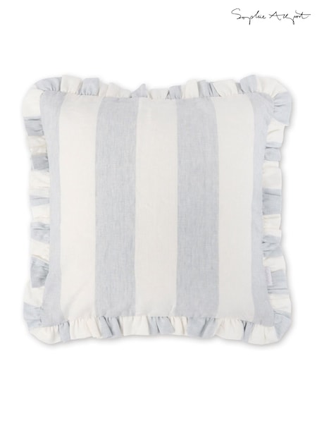 Sophie Allport Natural Witham Blue Stripe Frill Edge Cushion