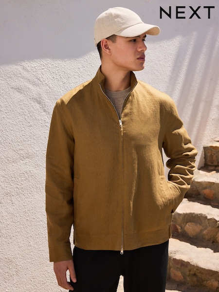 Tan Brown N. Premium 100% Linen Funnel Jacket