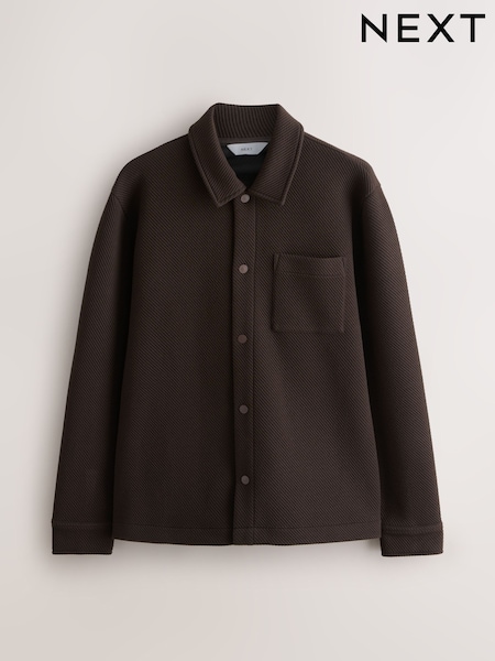 Chocolate Brown Diagonal Texture Jersey Shacket
