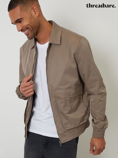 Threadbare Brown Showerproof Patch Pocket Zip Up Collared Jacket