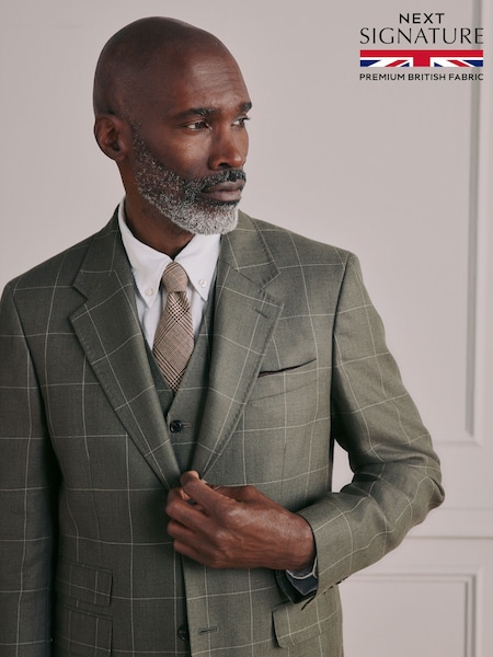Green Signature Tailored Fit Moons British Merino Wool Linen Blend Suit Jacket
