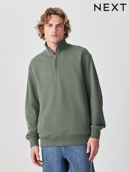 Green Quarter Zip Cotton Rich Jersey Sweatshirt