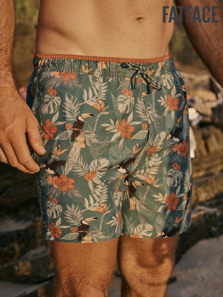 FatFace Tresvose Teal Blue Toucan Print Swim Shorts
