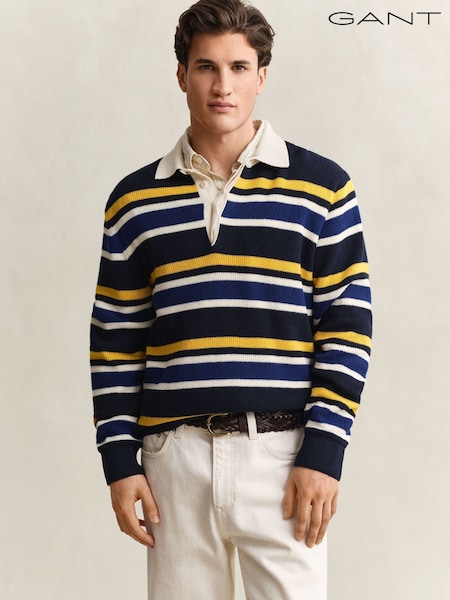 GANT Blue Striped Cotton Rib Knit Rugby Shirt