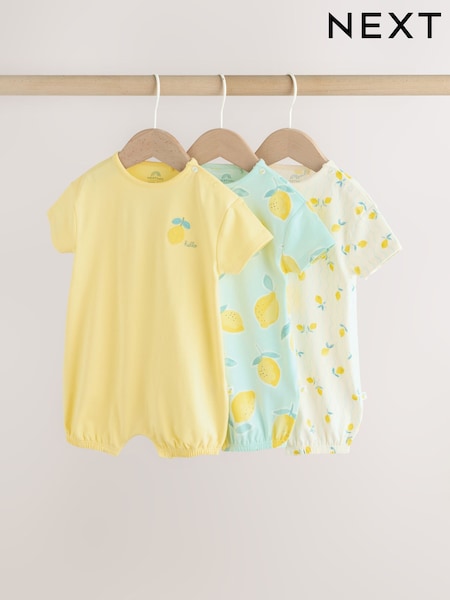 Blue and Lemon Printed Button T Shirt Jersey 3 Pack Baby Rompers