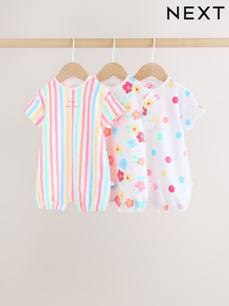 Pink Tonal Spot and Stripe Frill Shoulder Baby Rompers 4 Pack