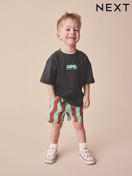Red/Green Wobbly Stripe Pull On Shorts (3mths-7yrs)