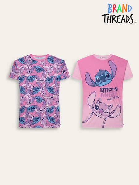 Brand Threads Pink Lilo & Stitch Nighties 2 Pack