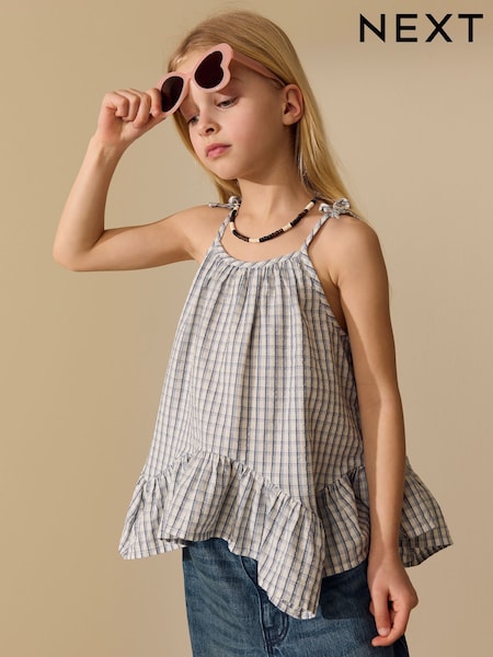 Blue Check Strappy Dippy Hem Blouse (3-16yrs)