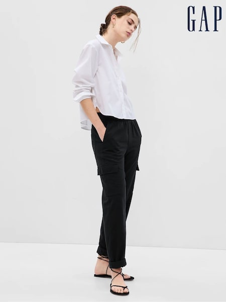 Gap Blue Linen Cotton Blend Mid Rise Cargo Trousers