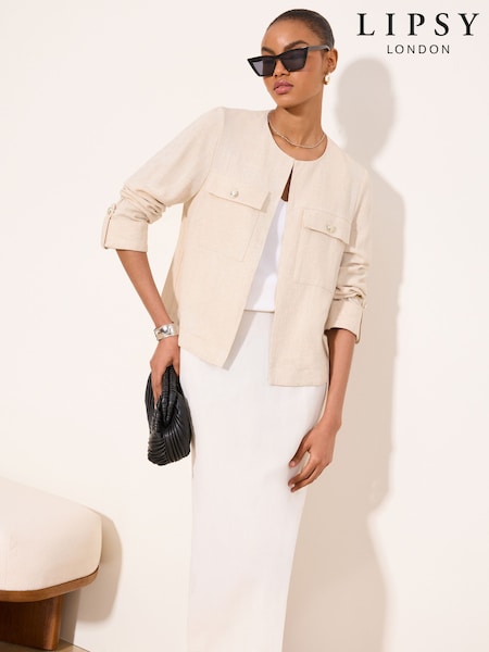 Lipsy Neutral Touch of Linen Utility Crop Jacket