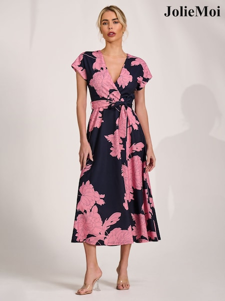 Jolie Moi Pink Wrap Frill Hem Maxi Dress