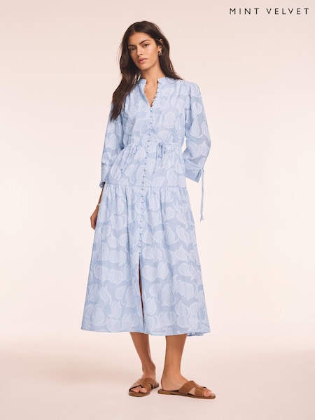 Mint Velvet Blue Cotton Floral Shirt Midi Dress