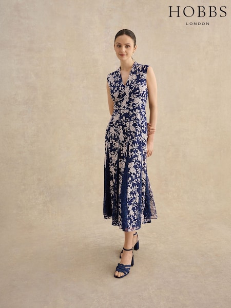Hobbs Blue Petite Quin Embroidered Dress