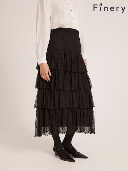 Finery Black Elisa Mesh Midi Tiered Skirt