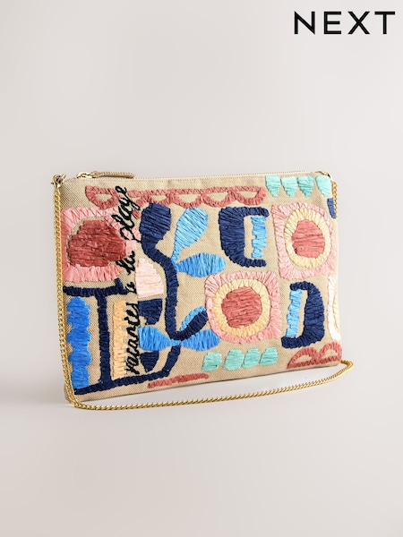 Natural Marrakesh Embroidered Clutch Bag