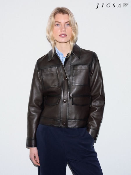 Jigsaw Brown Nappa Leather Cropped Jacket