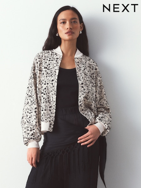 Monochrome Beaded Bomber Jacket