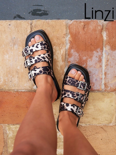 Linzi Animal Satellite Triple Buckle Flat Sandals